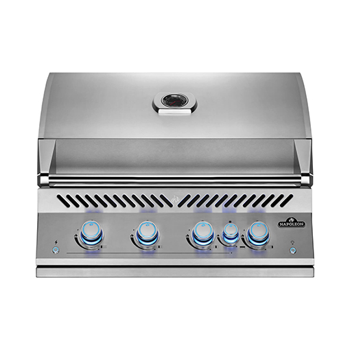 The Built-In 700 Series 32-inch Gas Grill with Rear Infrared Burner provides the high-quality grilling you have come to expect from Napoleon’s gas barbecues. Built seamlessly into your ideal outdoor kitchen, the premium stainless construction ensures stylish longevity and unparalleled performance. Thick, 9-mm stainless steel cooking grids are virtually maintenance-free. Enjoy ambiance and safety while grilling, the control knobs glow blue, changing to red when burners are in use. Grilling past dark is a joy with the integrated halogen interior hood lights to illuminate your grilling surface. Angular grease management with a perforated design, channels drippings for improved grease collection and ease of cleaning, reducing buildup and risk of grease fires. The Built-In 700 Series 32-inch Gas Grill has been designed specifically for ease of installation with integrated trim, an extra long flex line, and longer electrical wiring for zero design and functionality restrictions on install.