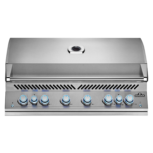 The Built-In 700 Series 44-inch Gas Grill with Rear Infrared Burner provides the high-quality grilling you have come to expect from Napoleon’s gas barbecues. Built seamlessly into your ideal outdoor kitchen, the premium stainless construction ensures stylish longevity and unparalleled performance. Thick, 9-mm stainless steel cooking grids are virtually maintenance-free. Enjoy ambiance and safety while grilling, the control knobs glow blue, changing to red when burners are in use. Grilling past dark is a joy with the integrated halogen interior hood lights to illuminate your grilling surface. Angular grease management with a perforated design, channels drippings for improved grease collection and ease of cleaning, reducing buildup and risk of grease fires. The Built-In 700 Series 44-inch Gas Grill has been designed specifically for ease of installation with integrated trim, an extra long flex line, and longer electrical wiring for zero design and functionality
